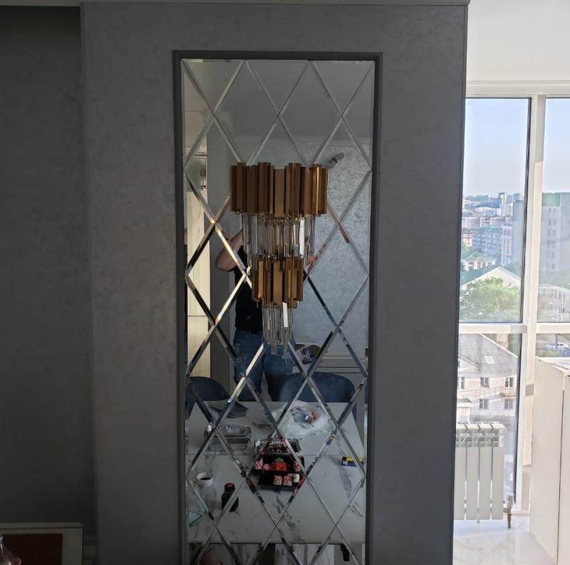 Использована зеркальная квадратная плитка с фацетом.